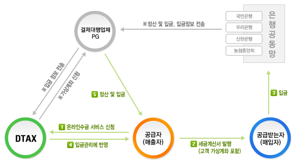 | DTAX °í°´(°ø±ÞÀÚ/¸ÅÃâÀÚ)ÀÌ ¼¼±Ý°è»ê¼ ¹ßÇà°ú µ¿½Ã¿¡ °¡»ó°èÁ¸¦ ¹ß±ÞÇÏ¸é ¸ÅÀÔÀÚ´Â ¹ß±Þ ¹ÞÀº °¡»ó°èÁ·ΠÀÔ±Ý Ã³¸®¸¦ ÇÒ ¼ö ÀÖ½À´Ï´Ù. ÀÔ±ÝÀÌ ¿Ï·áµÇ¸é ½Ç½Ã°£À¸·Î ¸ÅÃâÀÚÀÇ ÀԱݰü¸® ³»¿ª¿¡ ÀÚµ¿ ¹Ý¿µµÇ¾î ³»¿ª Á¤º¸¸¦ ¾Ë¼ö ÀÖ´Â ¼ºñ½ºÀÔ´Ï´Ù. |